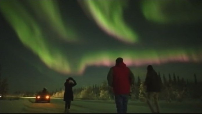 2015 Amatérská meteorologická společnost. Polární záře a sob ve Skandinávii. Podle Suchana je ale možné že se úkazu lidé v ČR dočkají v noci na pondělí.